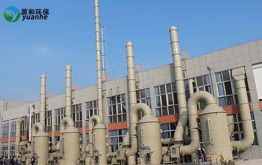 立式洗滌塔,有害的廢氣從塔體的下部進(jìn)入,立式洗滌塔內(nèi)部設(shè)有一定高度的填料層廢氣自下而上穿過填料層,最后從塔頂排出。同時(shí)從塔體的上部設(shè)有噴淋系統(tǒng),利用清水作循環(huán)吸收液,循環(huán)水從塔體的上部的布水器噴淋至填料層潤濕填料表面形成流動(dòng)的液膜。填料層內(nèi)氣、液兩相呈逆流流動(dòng),氣液兩項(xiàng)在塔內(nèi)逆流接觸,利用有害廢氣在吸收劑中的一定的溶解度,可溶的組分不斷溶入吸收液中,達(dá)到降低氣體中有害組分含量的目的。配添加適當(dāng)量的藥劑,有害廢氣不斷被吸收或是被化學(xué)反應(yīng)去除掉,因此在上升氣流中的濃度愈來愈低,到塔頂時(shí)達(dá)到吸收要求排出塔外。